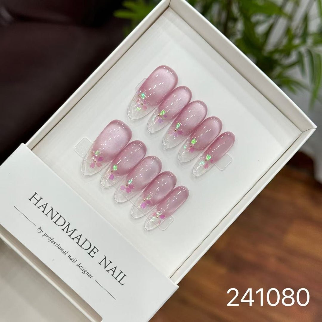 Elevate your nail game with the stunning Sakura Dream Cat Eye Long nails, inspired by the delicate beauty of cherry blossoms and the captivating allure of cat eye effects. These nails are designed for those who crave a unique and sophisticated look, blending the soft pink hues of sakura with a shimmering, magnetic cat eye finish that catches the light beautifully. Ideal for special occasions or everyday glamour, this manicure style offers a long, sleek shape that enhances the elegance of your hands. Crafted with high-quality materials, the Sakura Dream Cat Eye Long nails ensure durability and a flawless application, making them a must-have for nail enthusiasts. Whether you’re searching for ‘sakura nails,’ ‘cat eye manicure,’ or ‘long elegant nails,’ this design is optimized to stand out in beauty trends. Perfect for spring vibes or romantic aesthetics, these nails are easy to apply and maintain, providing a professional salon look at home. Pair them with your favorite outfit for a complete, polished appearance that turns heads. Explore the magic of Sakura Dream Cat Eye Long nails and let your fingertips bloom with style and charm.